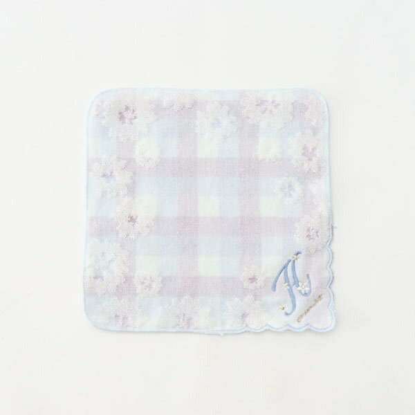 コクーニストのイニシャル刺繍ミニタオル・イニシャル刺繍のミニタオル・フラワーモチーフにアクセントのスカラップカットがキュートなデザイン・ポケットやバッグに入れておくのに便利なサイズ・ふっくらとした綿100%素材*一部詳細画像に、同型で別カラーの画像を使用しています。