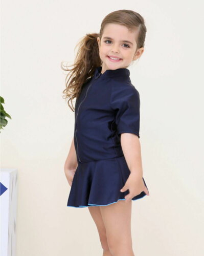 送料無料スクール水着 水着 ワンピース水着 ラッシュガード ジップアップ 5分袖 スカートフリル 可愛い サイズ豊富 キッズ ジュニア 女の子 幼稚園 小学校