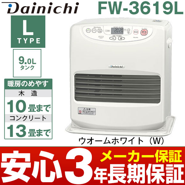 【メーカー取寄せ】ダイニチ2019年最新モデル 石油ファンヒーター[9Lタンク]Lシリーズ木造10畳まで・コンクリート13畳まで長期3年メーカー保証商品FW-3619L/FW3619Lウォームホワイト(W)